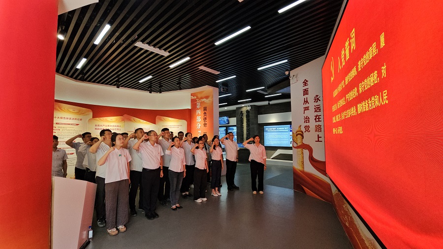 在講解員的帶領(lǐng)下,全體人員先后參觀了“窯洞之問(wèn)、兩個(gè)答案”“挺紀(jì)在前、筑牢防線”“以案為鑒、警鐘長(zhǎng)鳴”和“肩負(fù)使命、砥礪前行”四個(gè)展區(qū)。借助多媒體技術(shù)、圖文資料、案例展示等,生動(dòng)呈現(xiàn)黨的反腐倡廉歷程和當(dāng)前反腐敗斗爭(zhēng)形勢(shì);精選典型腐敗案例和微電影《初心》,深刻揭示違紀(jì)違法對(duì)個(gè)人、家庭和社會(huì)的多重危害,給參觀人員帶來(lái)強(qiáng)烈思想沖擊。活動(dòng)最后,全體黨員一起重溫入黨誓詞,面向黨旗莊嚴(yán)宣誓,進(jìn)一步強(qiáng)化理想信念和紀(jì)律意識(shí)。